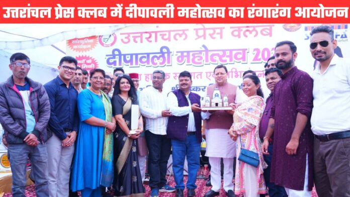 देहरादून। दीपों के पर्व दीपावली की उमंग के बीच उत्तरांचल प्रेस क्लब, देहरादून में रविवार को ‘दीपावली महोत्सव-2025’ का भव्य आयोजन हुआ। यह कार्यक्रम पत्रकारिता, संस्कृति और सामाजिक समरसता का अद्भुत संगम बन गया। समारोह में उत्तराखंड के मुख्यमंत्री पुष्कर सिंह धामी मुख्य अतिथि के रूप में शामिल हुए। उन्होंने पत्रकारों और उनके परिवारों को दीपावली की हार्दिक शुभकामनाएं दीं तथा कहा कि पत्रकारिता लोकतंत्र का चौथा स्तंभ है, जो समाज में सत्य, संवेदनशीलता और सजगता की लौ जलाए रखती है।