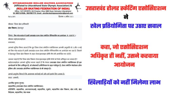 उत्तराखंड रोलर स्केटिंग एसोसिएशन के महासचिव अरविंद कुमार गुप्ता ने जिला खेल अधिकारी को पत्र भेजकर अपनी शिकायत दर्ज कराई है। उन्होंने बताया कि केवल उत्तराखंड रोलर स्केटिंग एसोसिएशन ही इन आयोजनों के लिए अधिकृत है। वह इसके लिए रोलर स्केटिंग फेडरेशन ऑफ इंडिया और उत्तराखंड ओलंपिक एसोसिएशन से भी संबद्ध हैं। जबकि जो एसोसिएशन आयोजन कर रही है, वह ना तो ऐसे आयोजनों के लिए अधिकृत है और ना ही संबद्ध है। प्रतियोगिता के प्रमाण पत्र और पुरस्कार की कोई वैद्यता नहीं है। ऐसे में जो सैकड़ों छात्र इस प्रतियोगिता में हिस्सा ले रहे हैं, उन्हें इससे कोई लाभ नहीं मिलेगा।