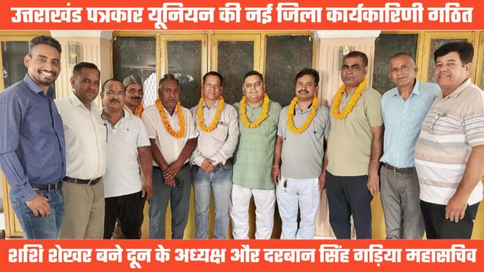 देहरादून। प्रदेश में पत्रकारों के सबसे बड़े संगठन उत्तराखंड पत्रकार यूनियन की राजधानी देहरादून में नई जिला कार्यकारिणी गठित हो गई है। रविवार को परेड मैदान स्थित उज्जवल रेस्त्रा में आयोजित बैठक में कार्यकारिणी के गठन की विधिवत घोषणा की गई। कार्यकारिणी में शशि शेखर को अध्यक्ष और दरबान सिंह गड़िया को महासचिव की जिम्मेदारी सौंपी गई है। प्रदेश कार्यकारिणी और पूर्व जिला कार्यकारिणी के पदाधिकारियों ने सभी नव नियुक्त पदाधिकारियों को फूल मालाएं पहनाकर उनका अभिनंदन किया।
